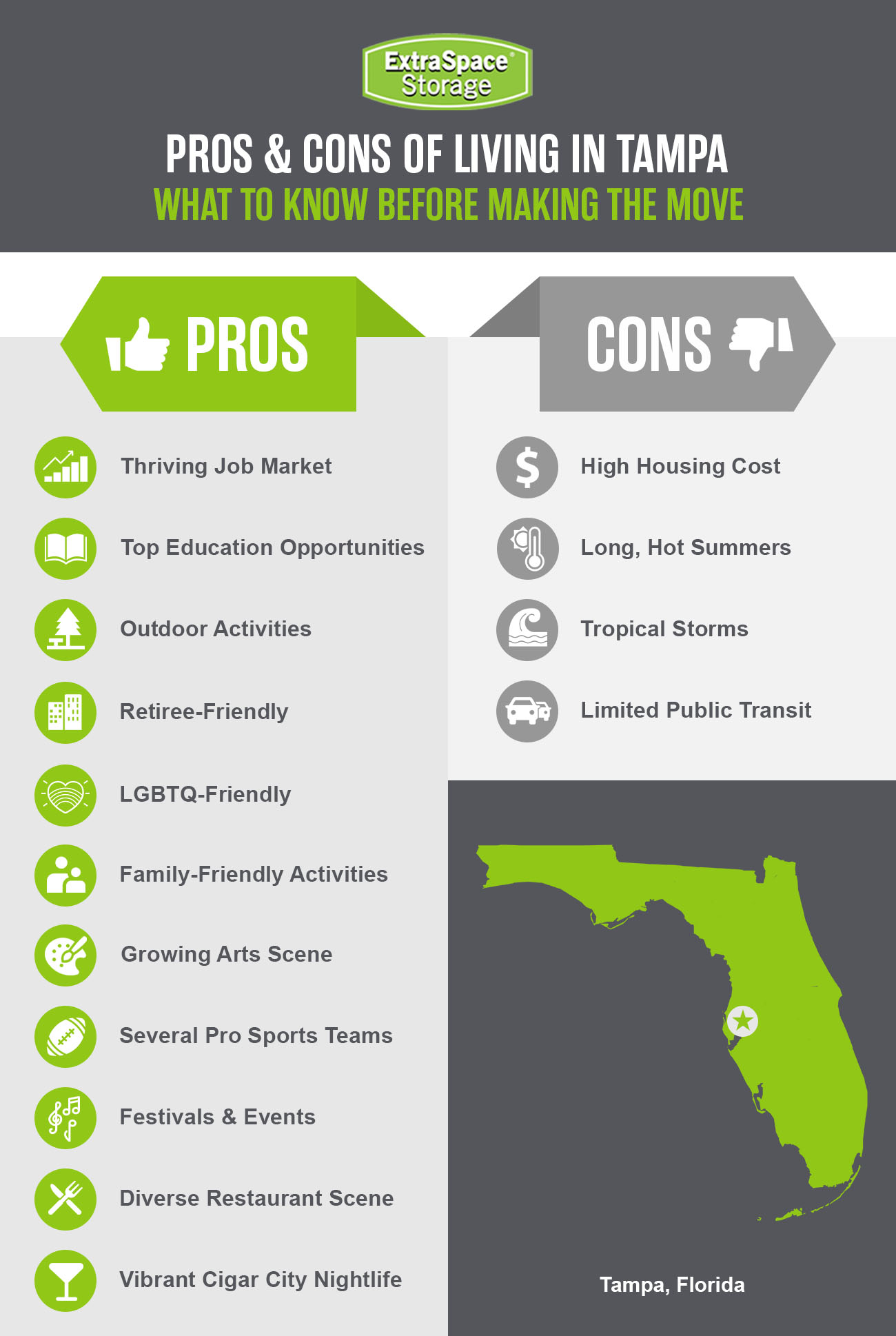Moving to Tampa, FL? Extra Space Storage offers secure self storage options to help with your move. Find Tampa self storage near you!