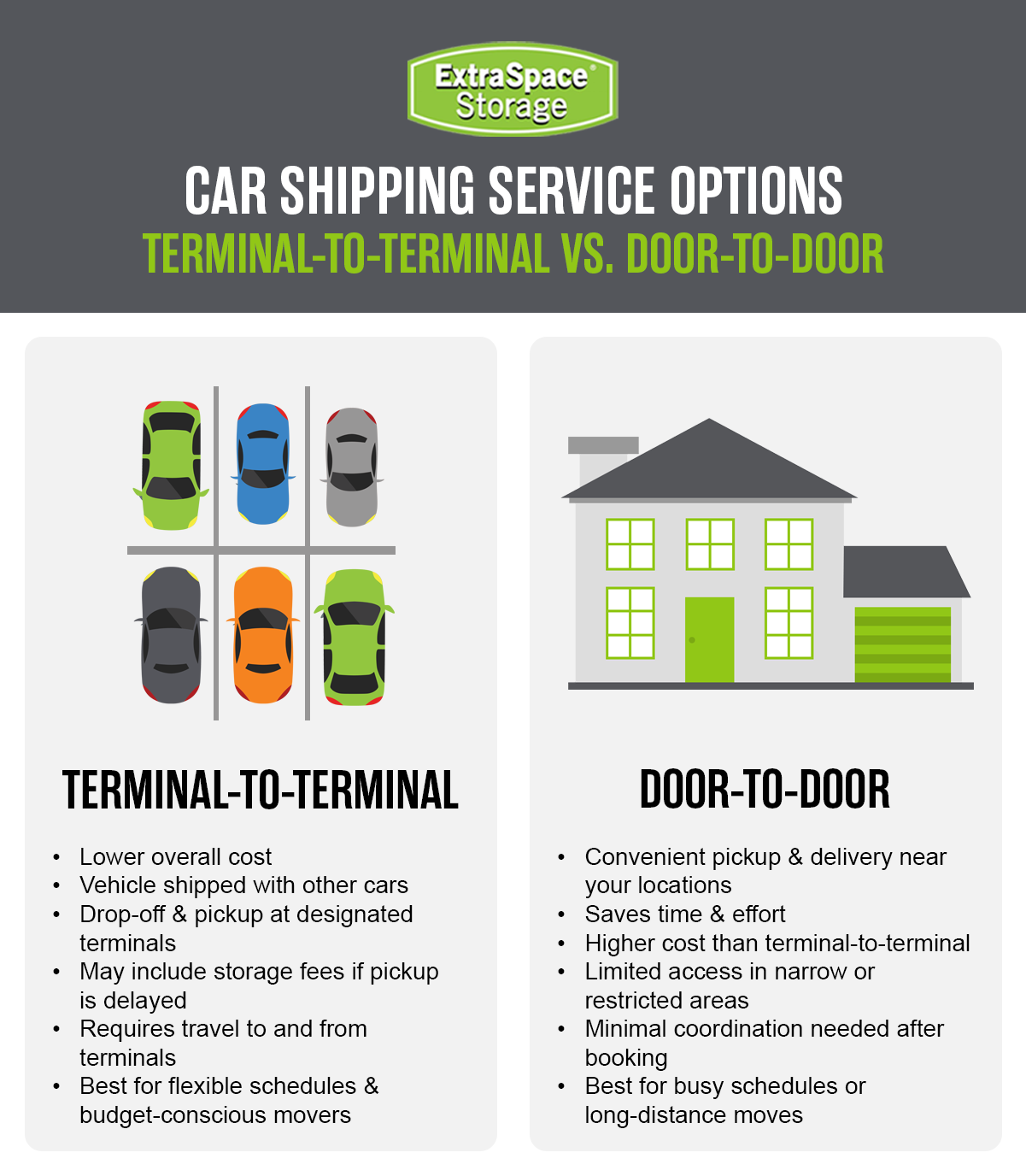 Moving soon? Find more moving guides and helpful relocation tools on the Extra Space Storage Moving Hub. And if you need vehicle storage throughout your transition, we have thousands of storage facilities across the country that offer car storage. Find a storage facility near you!